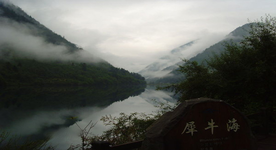 犀牛海是九寨溝中景色變化最多的海子之一,犀牛海是九寨溝的第二大海,其倒影幾乎是眾海之冠。每天清晨去霧飄渺時的云霧倒影,亦幻亦真,讓人分不清哪里是天,哪里是海。湖岸四周的彩葉也是亮麗多姿,艷冠群芳。犀牛海水域開闊,北岸的盡頭是生意盎然的蘆葦叢,南岸的出口既有樹林,又有銀瀑,中間一大片是藍得醉人的湖面。犀牛海的這一片山光水色,能讓游客流連忘返。