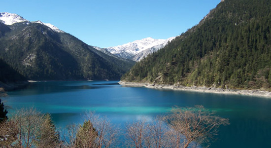 長海是九寨溝海拔最高、湖面最寬的海子,海子水面呈墨藍色,水源來自于高山融雪,令人奇怪的是,湖深處達百余米,呈S行展布,海子四周森林碧翠,山峰終年積雪。長海四周都沒有出水口,單夏季雨季,水不溢堤,冬夏久旱,也不干涸,因此長海被人稱為"裝不滿,漏不干的寶葫蘆”。隆冬時節(jié),長海冰層厚達60厘米,是冰上運動的理想場所。湖深處達百余米,呈S行展布,海子四周森林碧翠,山峰終年積雪。