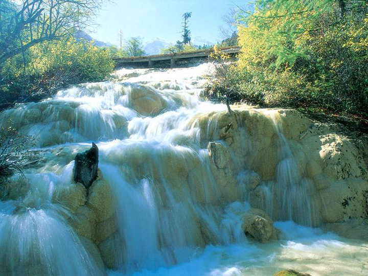 黃龍主要景點 洗身洞 登上黃龍第二臺階,就到古代冰川的一個出水口洗身洞。溶洞位于一堵40米寬的鈣華掛壁下部,洞高約1米、寬1.5米,進(jìn)洞1米處,布滿了淺黃色、乳白色鐘乳石。洞口水霧彌漫,飛瀑似幕,傳說是仙人凈身的地方。金沙鋪地距涪源橋約1338米。由于碳酸鹽在這里失去了凝埂成池的地理條件,因此漫坡的水浪,在一條長約1.3米的脊?fàn)钚逼碌厣戏w,并在水底凝結(jié)起層層金黃色鈣華灘,好似片片“鱗甲”,在陽光照耀下發(fā)出閃閃金光,是黃龍又一罕見奇觀。這里最寬的地方約122米,最窄處約40米。 據(jù)科學(xué)家認(rèn)定,金沙鋪地是目前世界上發(fā)現(xiàn)的同類地質(zhì)構(gòu)造中,狀態(tài)最好、面積最大、距離最長、色彩最豐富的地表鈣華灘流。盆景池 在金沙鋪地左側(cè),一組由近百個水池組成,池中有池,池外套池。池堤隨樹的根莖與地勢而變,堤聯(lián)岸接,活水同源,順勢層疊;池底呈黃、白、褐、灰多種顏色,池面澄凈無塵,望若明鏡;池旁池中,到處是木石花草,翠柏盤根,山花含笑,野果繽紛。這一片絢麗的景觀,儼然天設(shè)地造的奇特盆景,使園藝師們也嘆為觀止。爭艷池距涪源橋2447米,面積2萬平方米,由658個彩池組成,由于池水深淺各異,堤岸植被各不相同,因此一抹金黃、一抹翠綠、一抹酒紅、一抹鮮橙……爭艷媲美,各領(lǐng)風(fēng)騷,令人目不暇接。 爭艷池是目前世界上景象最壯觀、色彩最豐富的露天鈣華彩池群。睡美人走過“爭艷池”,驀然回首,會無比驚訝地發(fā)現(xiàn),身后一座巨大的山梁,頓時化作了一位美麗的藏族姑娘。藍(lán)天白云之下,她靜靜地躺在群山懷抱里,身著藏族長裙、頭佩飾物,頭、胸、腹及腰身都惟妙惟肖,甚至挺拔的鼻梁、微笑的嘴唇也清晰可見,氣質(zhì)非凡,就像一位在云中馳騁的仙女,累了之后安詳?shù)撵o臥在林海雪原之中。黃龍洞位于黃龍后寺左側(cè)約10米處,進(jìn)洞十米有一游覽大廳,高30米,寬20米,長50米,面積千余平方米,洞深至今無法考證。廳內(nèi)遍布鐘乳石,千姿百態(tài),廳左有一石階,上有建于明朝的三尊坐佛,身上披滿鈣華結(jié)晶,為自然與人工完美結(jié)合的產(chǎn)物。每年冬季,洞內(nèi)冰林、冰筍、冰幔、冰瀑構(gòu)成一幅冰晶畫面,景象絢麗。在此處“真人”、“佛爺”合二為一,道教佛教融為一體,是探求宗教奧妙的罕見“珍品”。 五彩池距涪源橋4166米,池群面積2.1萬平方米,有彩池693個,是黃龍溝內(nèi)最大的一個彩池群。池群由于池堤低矮,汪汪池水漫溢,遠(yuǎn)看去塊塊彩池宛如片片碧色玉盤,蔚然奇觀。“玉盤”在陽光的照射下或紅或紫,濃淡各異,色彩繽紛,極盡美麗嬌艷。隆冬季節(jié),整個黃龍玉樹瓊花,一片冰瀑雪海,唯有這群海拔最高的彩池依然碧藍(lán)如玉,仿佛仙人散落在群山之中的翡翠,詭譎奇幻,被譽(yù)為“人間瑤池”。它是黃龍景觀中最美、最有特色的景點,是黃龍的“眼睛”,是黃龍溝景區(qū)的精華所在。轉(zhuǎn)花池距五彩池約10米,面積4平方米,藏匿在高山灌木群的綠蔭之中,池水清澈見底。數(shù)股泉水從地下涌出,在池面形成無數(shù)的波紋,若有人向池水中投入鮮花、樹葉,它們便會隨著不同節(jié)奏的漣漪朝不同的方向旋轉(zhuǎn)起來,十分奇異,偶然又會有兩朵鮮花合上了同樣的節(jié)奏,朝著相同的方向旋轉(zhuǎn)在一起,其原因至今未明。“黃龍廟會”期間,時有青年男女來此投花、投幣占卜愛情的成敗,把轉(zhuǎn)花池圍的水泄不通,十分熱鬧。 黃龍古寺距溝口約3.5公里,有黃龍古寺可讓游客休息。據(jù)《松潘縣志》載:“黃龍寺,明兵馬使馬朝覲建,亦名雪山寺,相傳黃龍真人養(yǎng)道于此,故名。有前中后寺,殿閣相望,各距五里。” 溝內(nèi)原有前、中、后三寺廟,前寺現(xiàn)僅存遺址;中寺共五殿。黃龍中寺建筑占地約700平方米。屬佛教寺廟,為單檐歇山式造型,古樸雄偉。原有五殿,分別為靈官殿、彌勒殿、天王殿、大佛殿、觀音殿,現(xiàn)僅存觀音殿及十八羅漢塑像。近年已修復(fù)一新。殿內(nèi)有茶水、儀器以及旅游紀(jì)念品等供應(yīng)。距中寺約2.5公里為黃龍后寺,亦為馬朝覲所建。廟宇隨山就勢,宏偉壯觀,飛格斗拱,雕梁畫棟,獨具風(fēng)格。寺門繪有彩色巨龍,上有古匾,正中為“黃龍古寺”,左書“飛閣流丹”,右書“山空水碧”,書法雄渾,氣勢端莊。黃龍古寺周圍的群山,青翠起伏,又稱藏龍山。白雪皚皚,玉嶂參天的玉翠山和頂峰雪寶頂,雄鋸于黃龍。雪寶頂上有發(fā)育良好的冰川地貌,角峰刃脊在陽光映照下險幻無比。寺前有近萬平方米的開闊地,每年舉辦廟會。寺后約1平方公里范圍為黃龍景區(qū)中的“黃金”景區(qū)。距后寺背面不到100米,有一龍王廟,每年農(nóng)歷六月十五日為黃龍寺廟會。屆時藏、羌、回、漢各民族群眾登山飽嘗大自然美景祈禱吉祥和豐收。 |